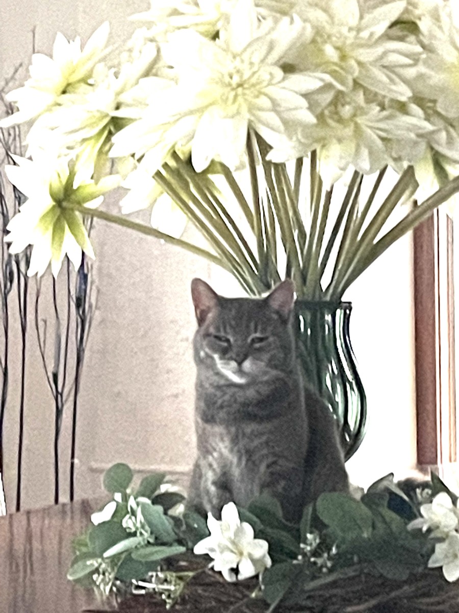 Miss Dimple was brought home by my soon-to-be wife after a business trip. She told me she had a surprise in the bedroom, so I followed along. When we got into the bedroom, on the bed was a small white cat with the pinkest nose I had ever seen asleep with her head on the foot of the bed. She didn't wake up when we walked into the bedroom because she was deaf, I was told. As soon as my hand touched her little head, she woke up and let loose the loudest 'meow' I have ever heard. She then flopped back on her side and began to purr about as loud as she meowed. Miss Dimple was renamed Purr (and often we would mash her names together as Miss Dimplepurr) and she became my little shadow for the next 17 years. She was never far from me when I was home. She always wanted to be in my lap, next to me or under the blankets. Purr was always the happiest cat and it was rare for her to not purr at any given moment. When my daughter was born, Purr hovered around her as much as she did with me and had so much tolerance for my young daughter that she even allowed my daughter to draw on her white fur with markers while she lay on her side, purring, although we were far from happy with our daughter. At the time of Miss Dimple's adoption, my wife had picker her up at Whiskers in the Clifton Park PetSmart. We had an apartment in Clifton Park at the time and Purr went with us to five other places over the years until the fifth place was our first house and would be Purr's last home. There is a cat shaped hole in our hearts for Purr, I no longer have my little shadow, and we no longer hear her loud meows as she looks for us in the house. I am happy though, we gave her a forever home and she never went hungry, got too cold, or felt a lack of love as much as we could give for our little deaf cat.