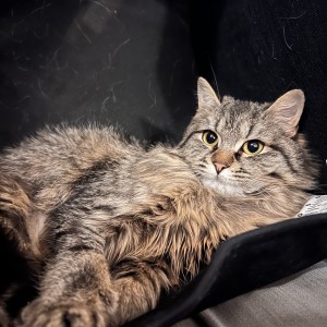 A sweet little girl who’s learning how to be a spoiled house cat. She loves to follow you and see what you’re up to. She’s very curious about toys but not entirely sure what to do with them. She likes to watch wand toys, chase down toy mice and balls. Once she’s comfortable she will sit on a couch or on your bed and enjoy your company if you invite her up. To show she really loves you she will give your hand small nibbles. She would do well with a cat to be friends with but would also do well as an only cat.