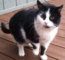 We last saw Domino on August 3rd in Glenmont. He is a black and white domestic short hair. He is around 5 years old and is neutered and doesn't like to be handled for long. Our phone number is 518-439-6752.