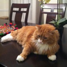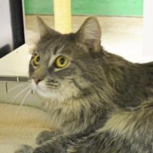 Sasha is a large gray longhaired male, neutered, aprox. 2 years old, with gold/green eyes. He escaped from his home in Clifton Park on Saturday, 4/13. He normally wears a black collar with rhinestones, although it may have come off. He is not used to being outdoors and may be frightened, but is a gentle, affectionate cat.